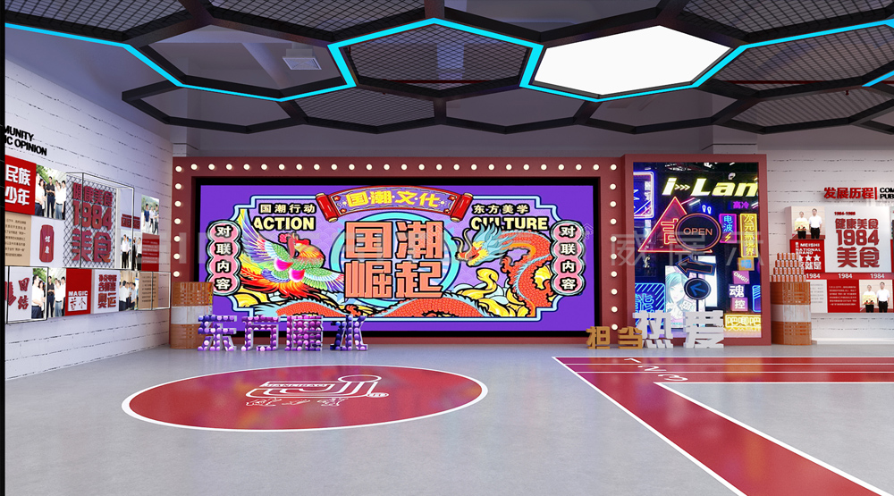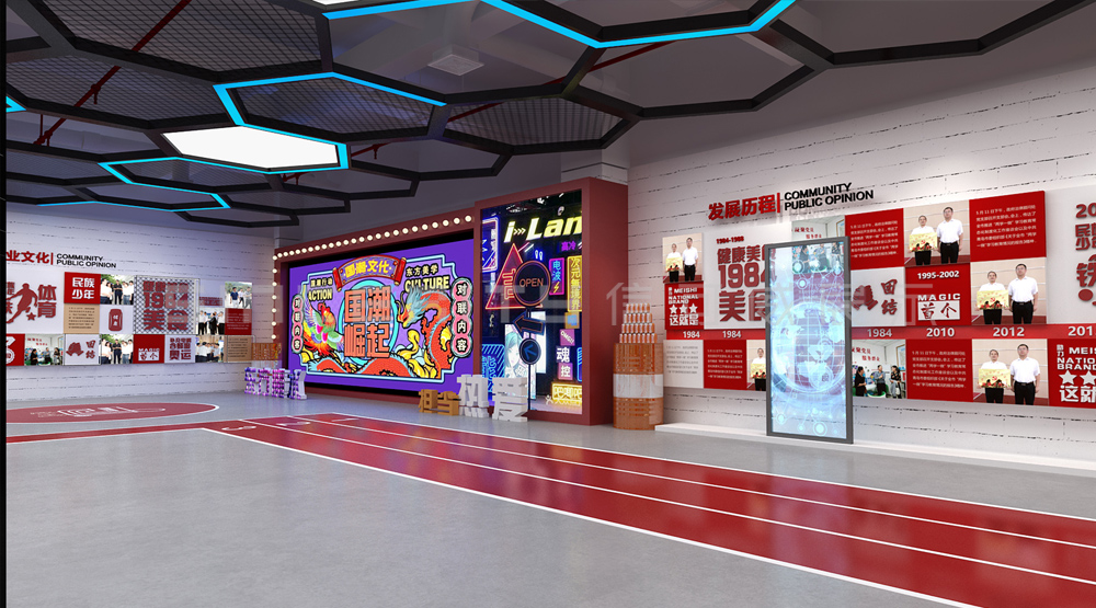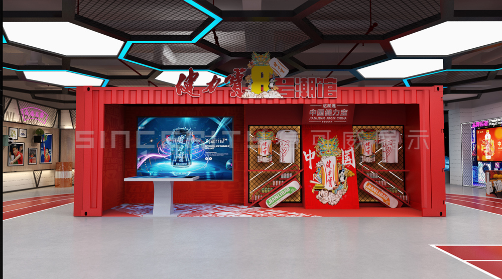 健力寶主題展覽館改造設(shè)計(jì)項(xiàng)目,信可威的設(shè)計(jì)方案以“科技感、現(xiàn)代感、互動(dòng)感”為主,貼合健力寶品牌主色調(diào)“中國(guó)紅”,融入健力寶企業(yè)文化,簡(jiǎn)單的增加國(guó)潮性元素,同時(shí)凸顯了體育品牌,增加了互動(dòng)體驗(yàn)區(qū)拍照區(qū),加強(qiáng)互動(dòng)體驗(yàn)感,給參觀者留下深刻印象。