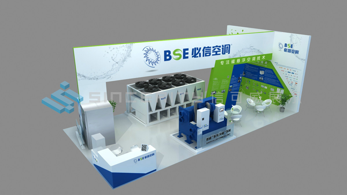 必信空調,蘇州必信空調有限公司位于蘇州高新區科技城,是國內一家專注于磁懸浮空調技術的國家級高新技術企業。必信空調展臺設計融科技、環保于一體,契合必信空調“中國智造”的經營戰略,呼應“新時代、新智造、新征程”主題,折射出高效、節能、環保的產品定位。