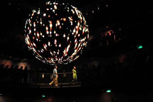 例如,在澳門(mén)新濠天地一個(gè)展廳中,設(shè)計(jì)師設(shè)計(jì)了一個(gè)360度立體動(dòng)感的、聲光電技術(shù)結(jié)合的表演《龍騰》,其實(shí)就是一個(gè)環(huán)幕全景式電影展示,通過(guò)一個(gè)故事性的描述“龍的誕生與追尋”,體驗(yàn)360度影像技術(shù)帶來(lái)的巨大視聽(tīng)震撼。這種表現(xiàn)方式具有打破時(shí)空局限的較強(qiáng)表現(xiàn)力,能令參觀者產(chǎn)生極強(qiáng)的身臨其境的參與感。